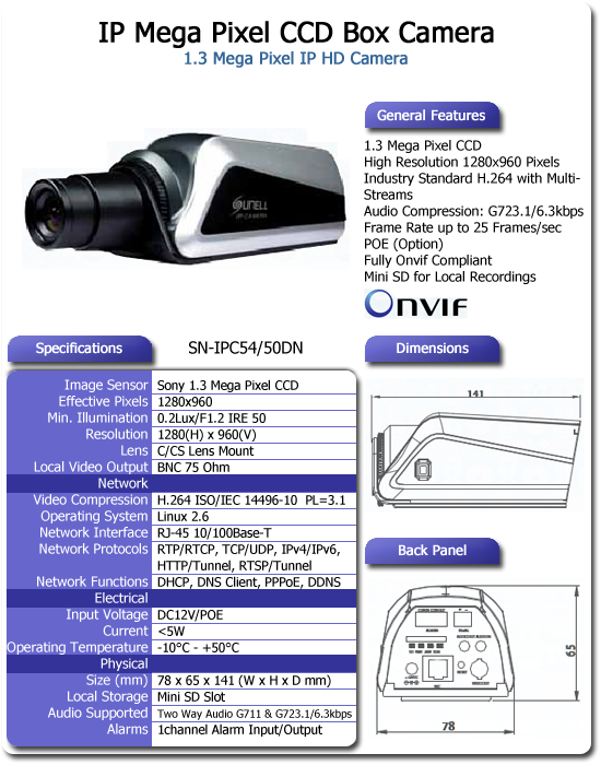 Home > Surveillance > IP Cameras > IP Box > SN_IPC54_50DN