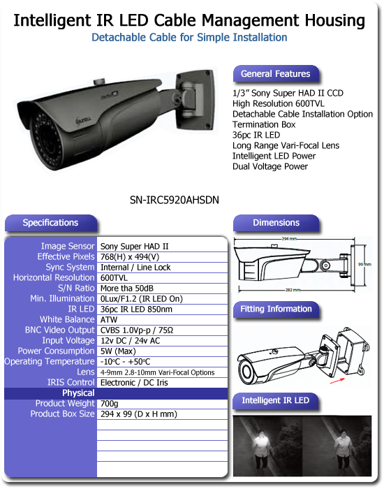 Home > Surveillance > CCD Cameras > CCD Bullet > SN-IRC5920AHSDN
