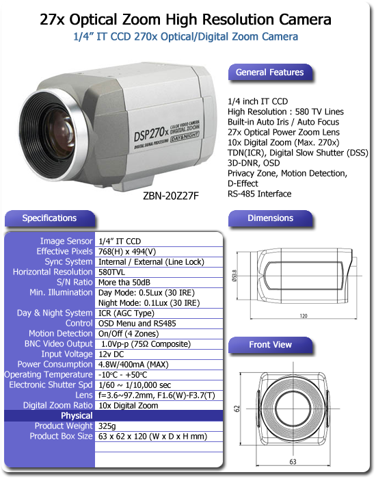 Home > Surveillance > CCD Cameras > CCD Zoom > ZBN-20Z27F