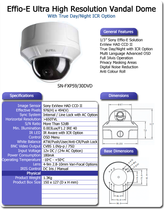 Home > Surveillance > CCD Cameras > CCD Dome > SN-FXP59/30DVD