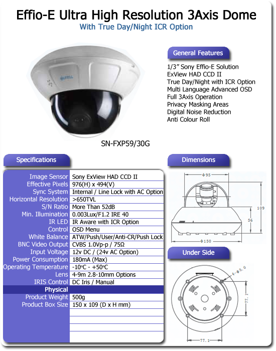 Home > Surveillance > CCD Cameras > CCD Dome > SN-FXP59/30G