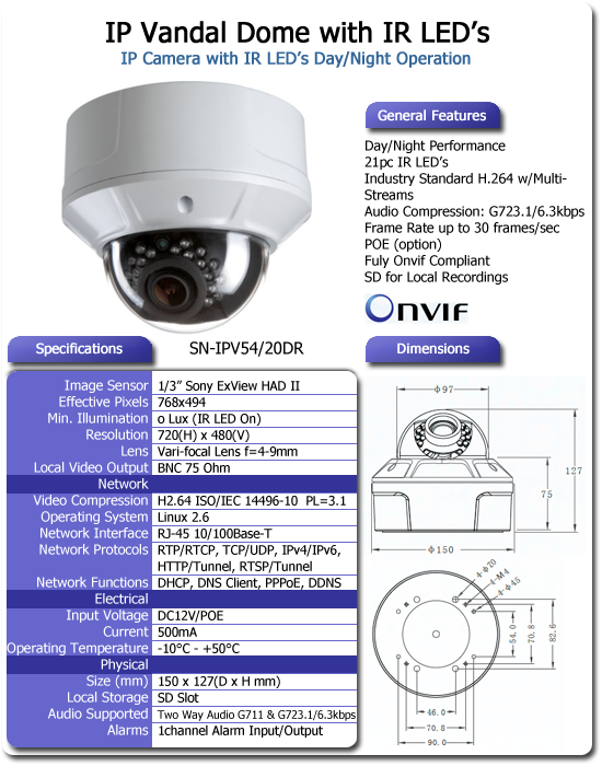 Home > Surveillance > IP Cameras > IP Dome > SN_IPV54_20DR