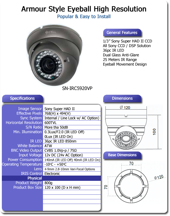 Home > Surveillance > CCD Cameras > CCD Bullet > SN-IRC5920VP